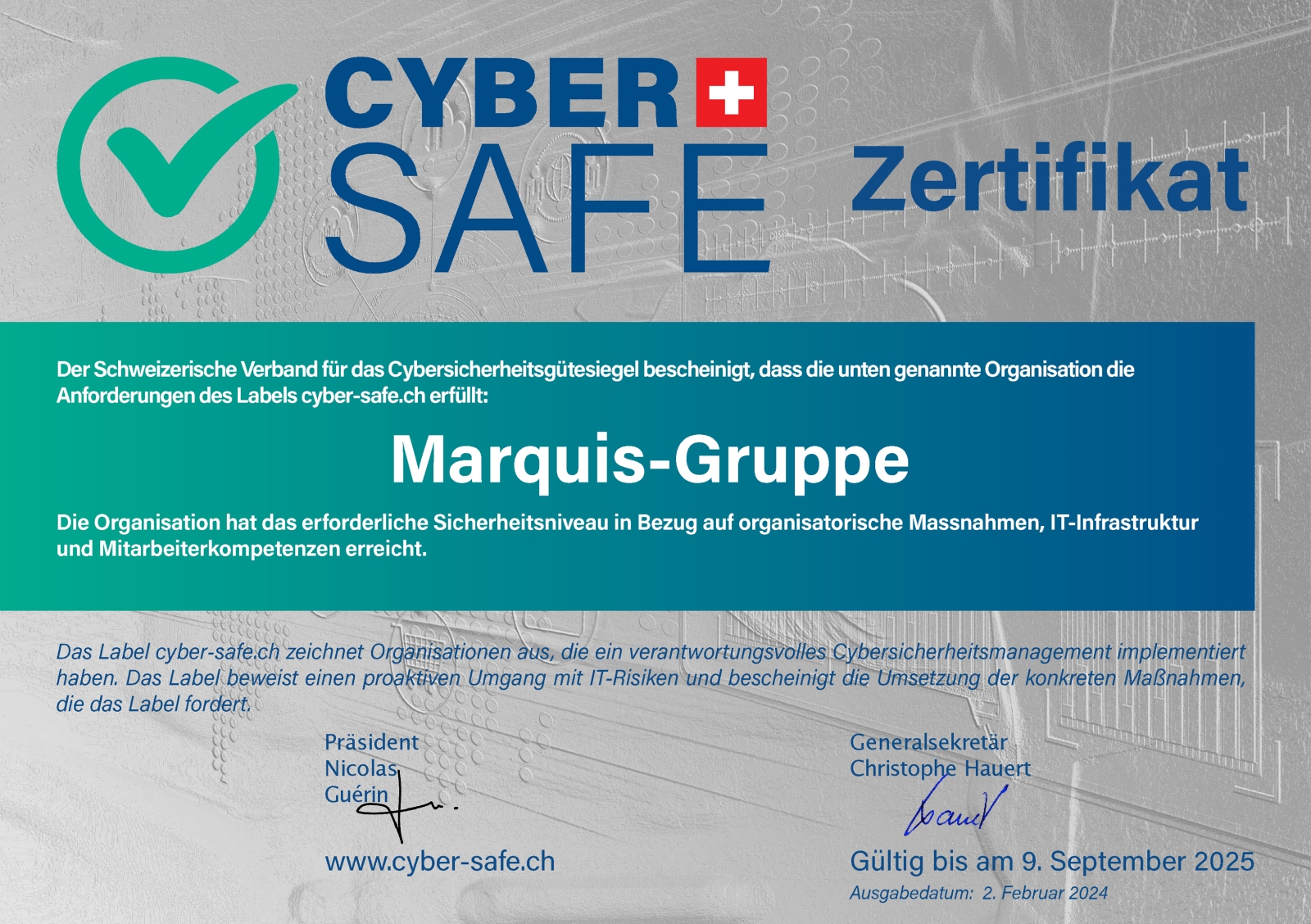 Es zeigt einen proaktiven Umgang mit IT-Risiken und bescheinigt die Umsetzung der vom cyber-safe.ch geforderten konkreten Massnahmen.